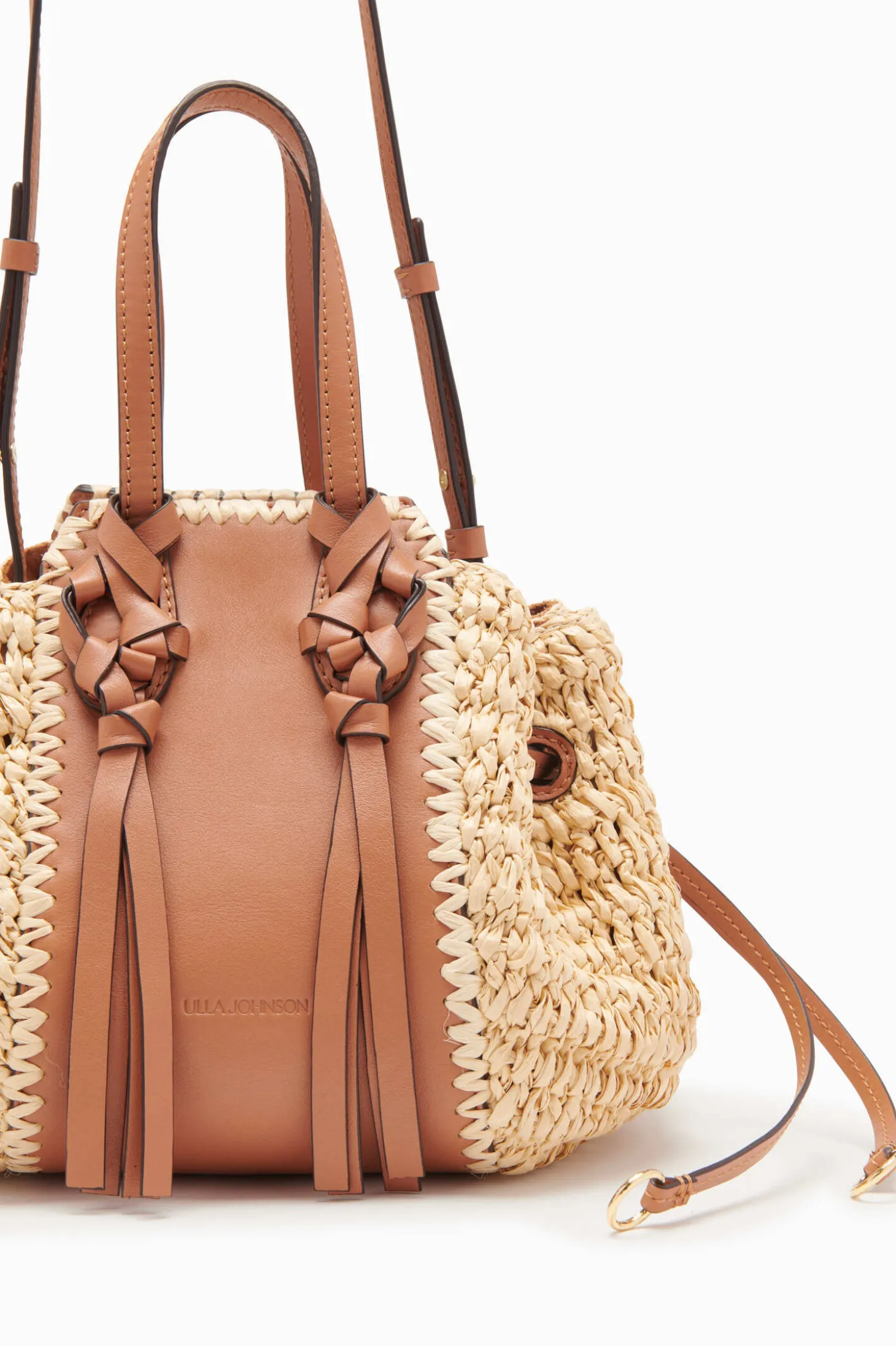 Our bestselling Gio Crossbody is a sumptuous blend of hand-woven raffia and buttery leather. The drawstring top expands the silhouette and provides ample space for your belongings, while the adjustable shoulder strap allows it to be worn crossbody.