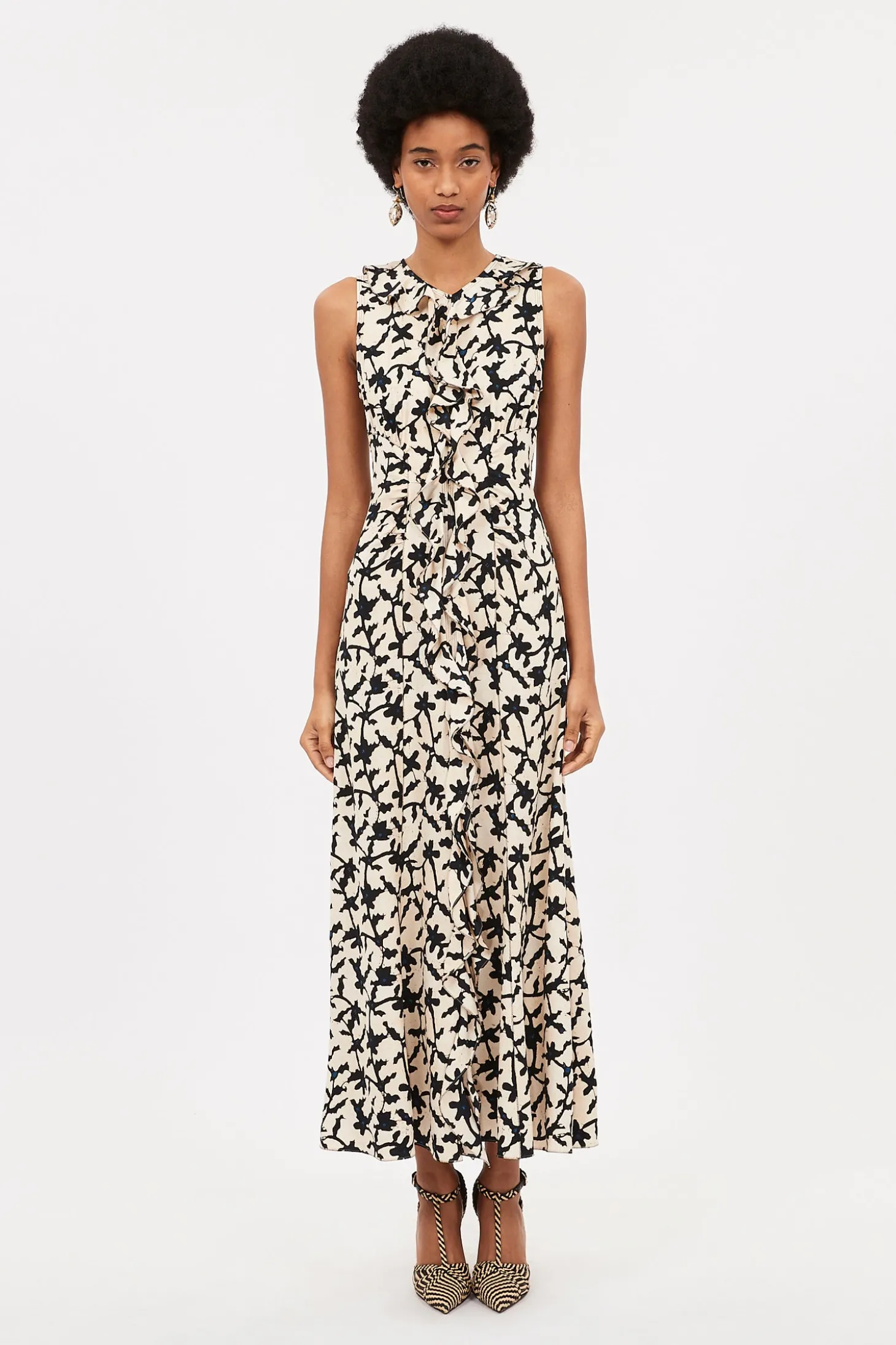 The Lille Dress arrives in our signature satin-back crepe, beautifully draped with ruffles and defined by architectural seams. Delicate contrast stitching brings added definition to this elegant black silhouette, perfect for all occasions. This midi dress fastens with a concealed back zipper.