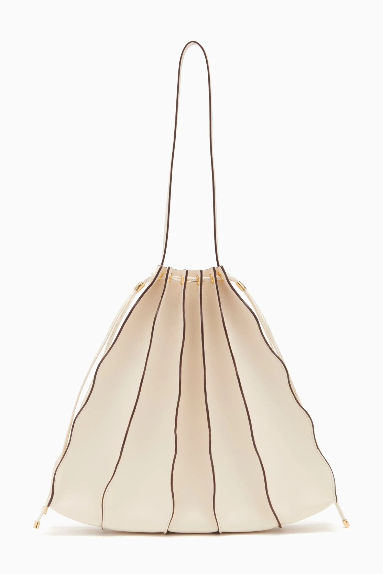Featured in Look 17 of our Spring/Summer ‘24 Runway Show, the Adria Tote is skillfully made in Italy from multiple strips of leather sewn together and then finished with painted edges, accentuating the beauty of the waves. This alabaster white bag has a drawstring opening that reveals a roomy suede-lined interior and is finished with gleaming antique brass hardware.
