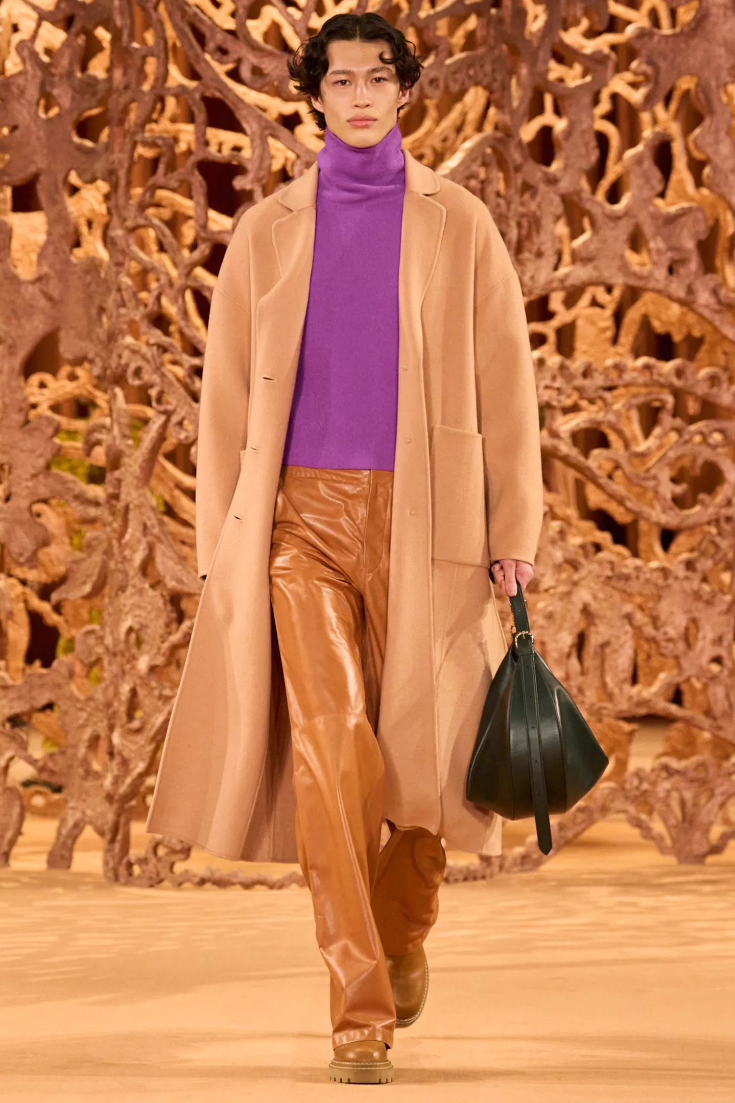 Showcased in Look 7 on the Autumn/Winter 2024 runway, our Harlow Coat is tailored from our beloved double-faced wool blended with cashmere in a soft dusty rose hue. This luxurious, single-breasted style features dropped shoulders, deep pockets, and a matching belt that cinches the silhouette.