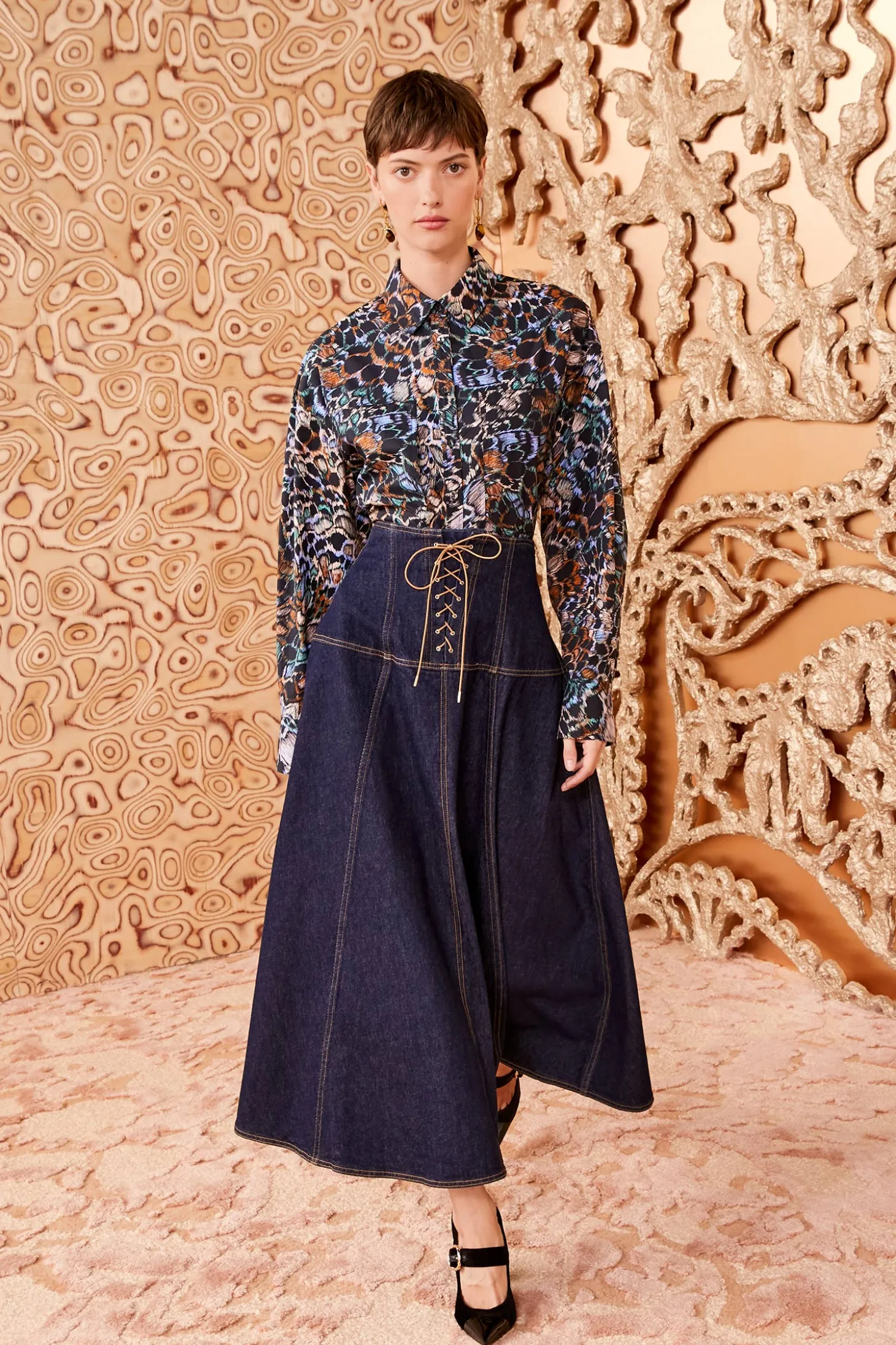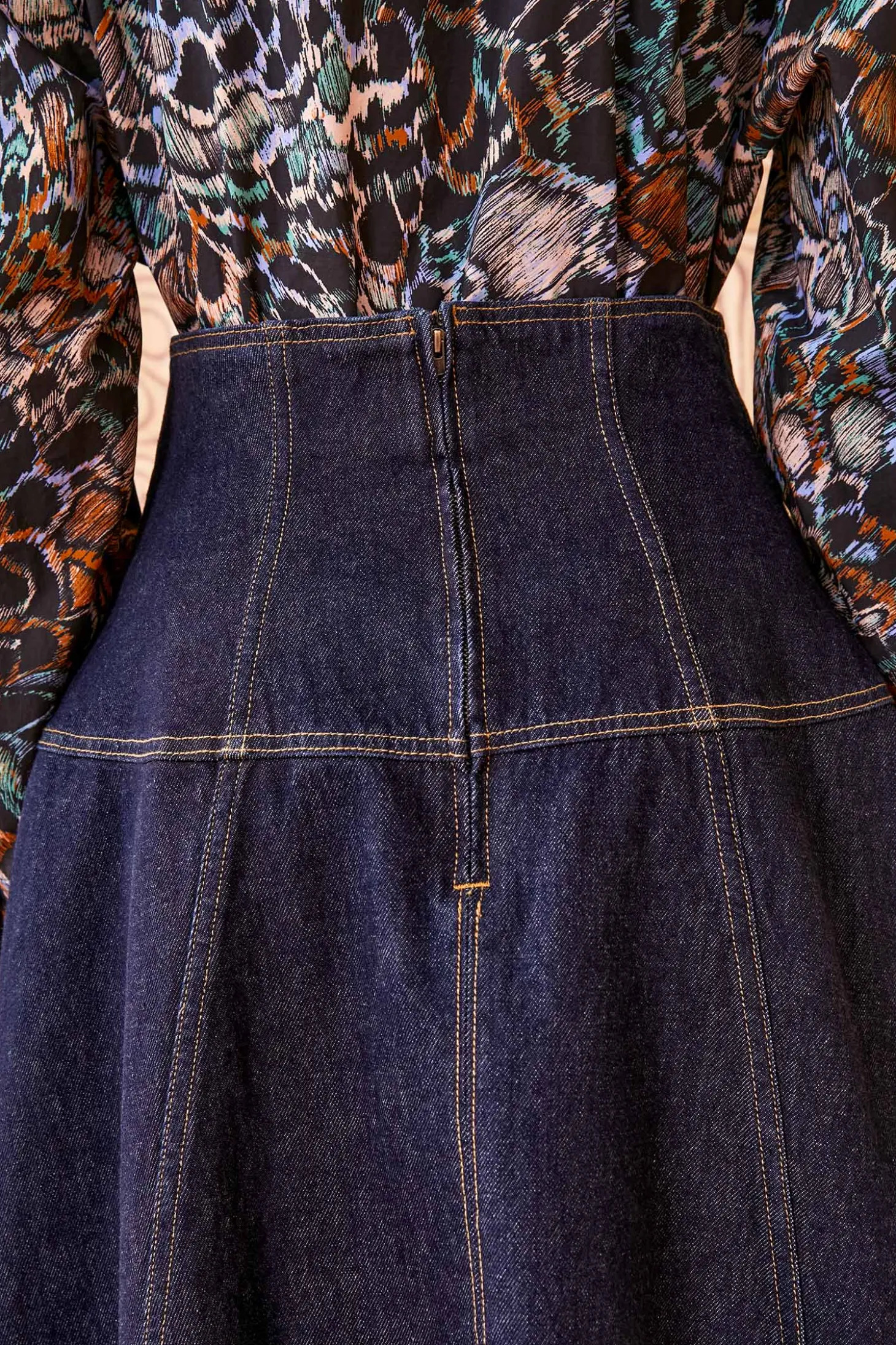 The Estelle Skirt is our new denim silhouette with an A-line cut adorned with feminine lace-up detailing in a nod to traditional corsetry techniques. Masterfully handcrafted in Los Angeles, this midi-length style is detailed with contrast stitching and arrives in our deep indigo Tigris wash that evokes classic vintage denim.
