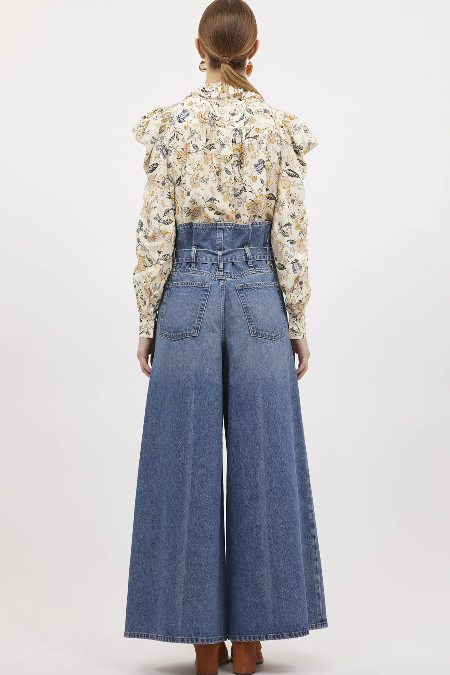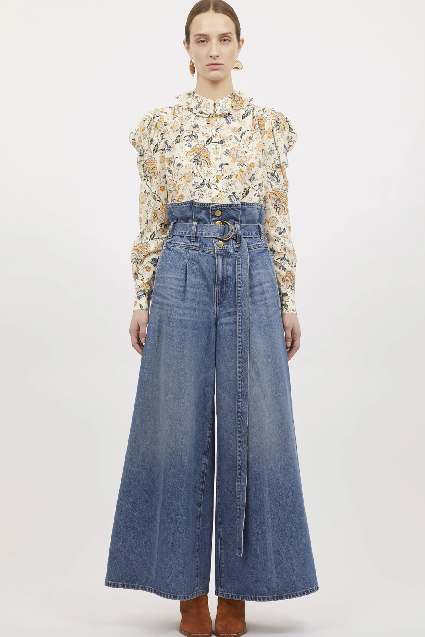 The Sylvan Jean is the latest addition to our premium denim collection. Defined by its ribcage paperbag waist, this jean features a loose-fitting leg that finishes at ankle length. This season we introduce our medium indigo wash, which uses water-saving technology to create a lived-in finish. All of our denim is made in Los Angeles.