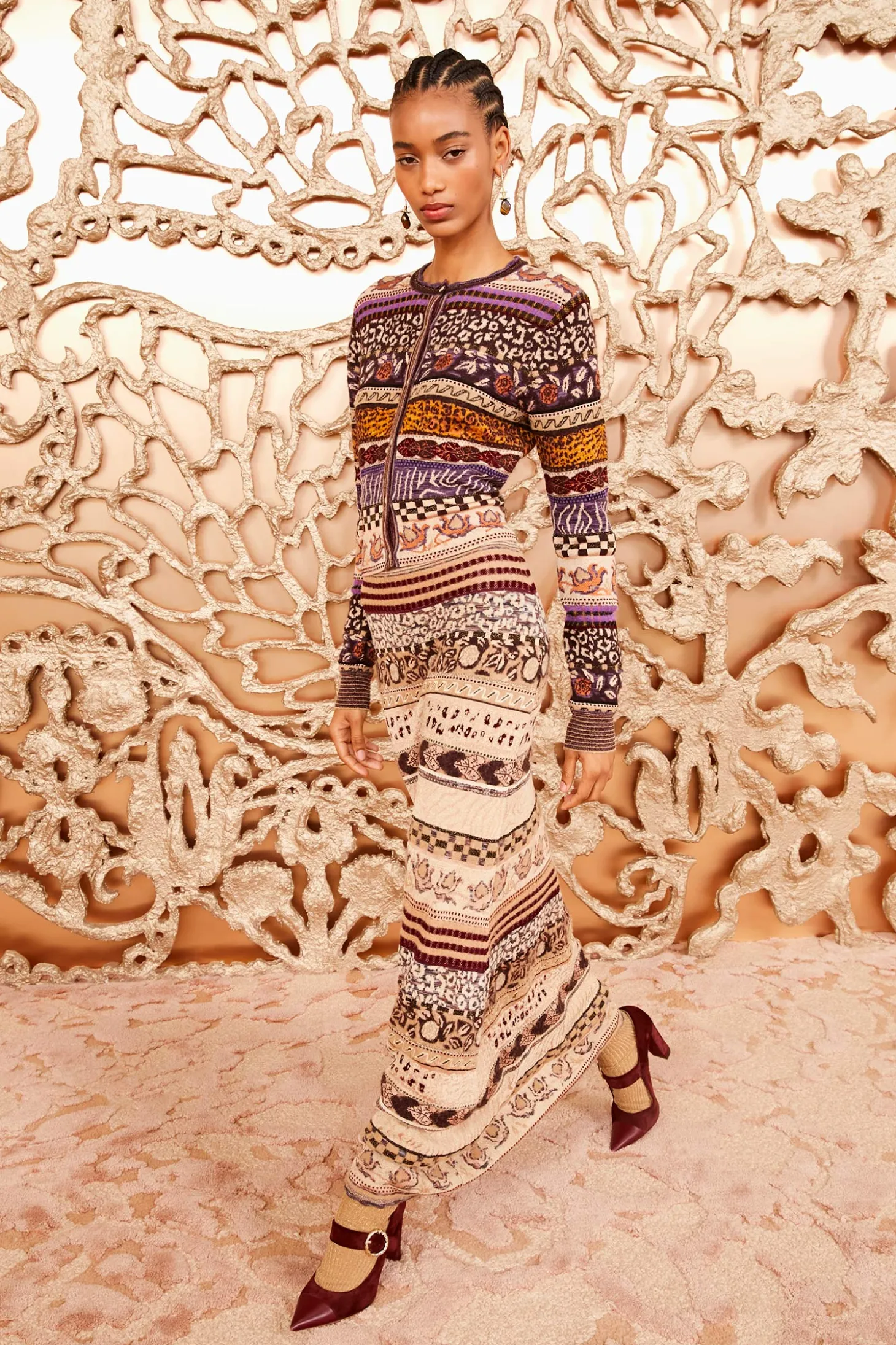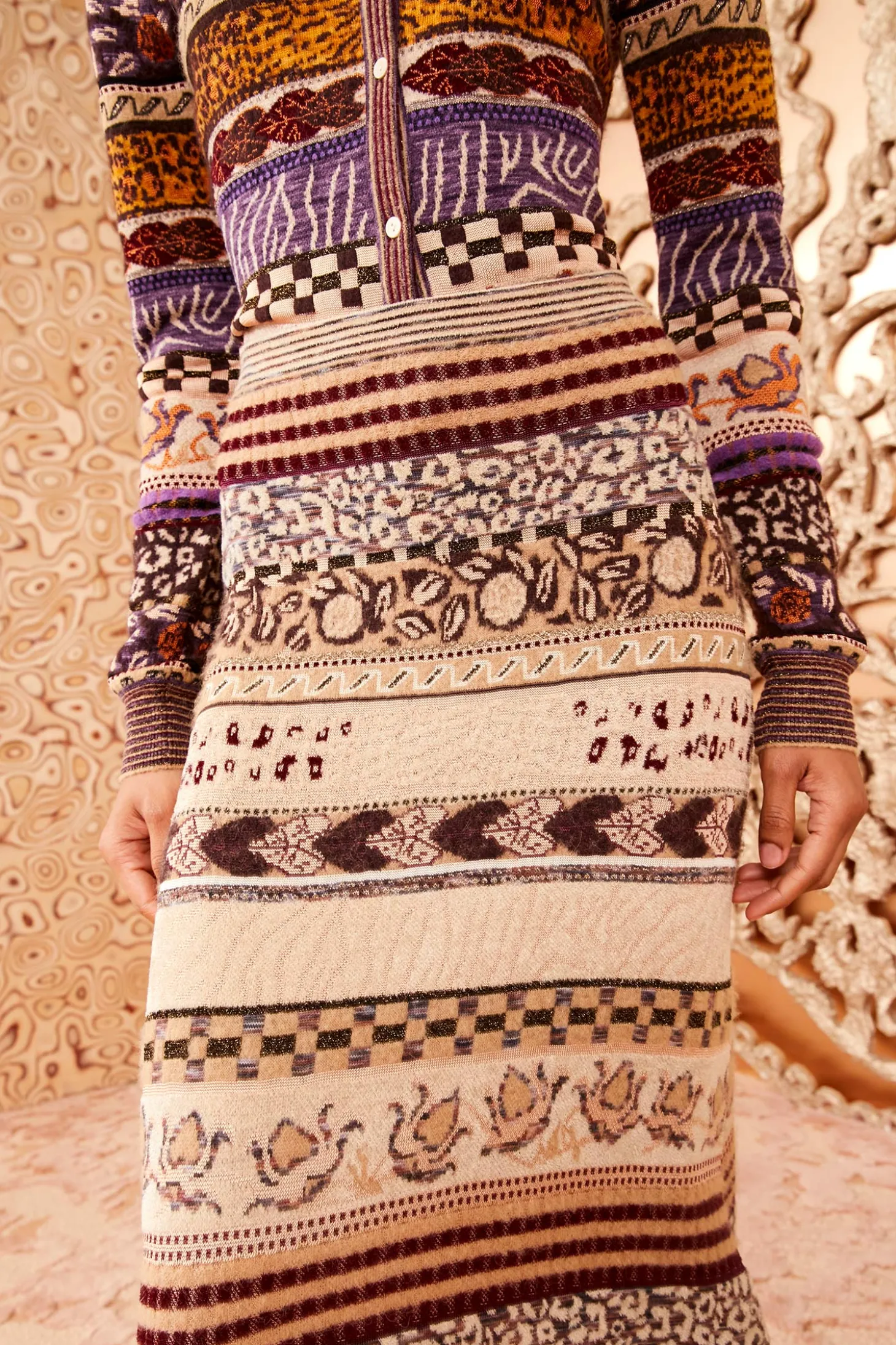 The Helene Skirt is made from Fair Isle jacquard richly detailed with floral and paisley motifs in a playful take on this season’s themes. Made with touches of wool and alpaca, this intricate, cream-based knit is ribbed at the waist for comfort, is mid-weight, and has an elongated midi length. Style with our Liza Cardigan for maximum impact.