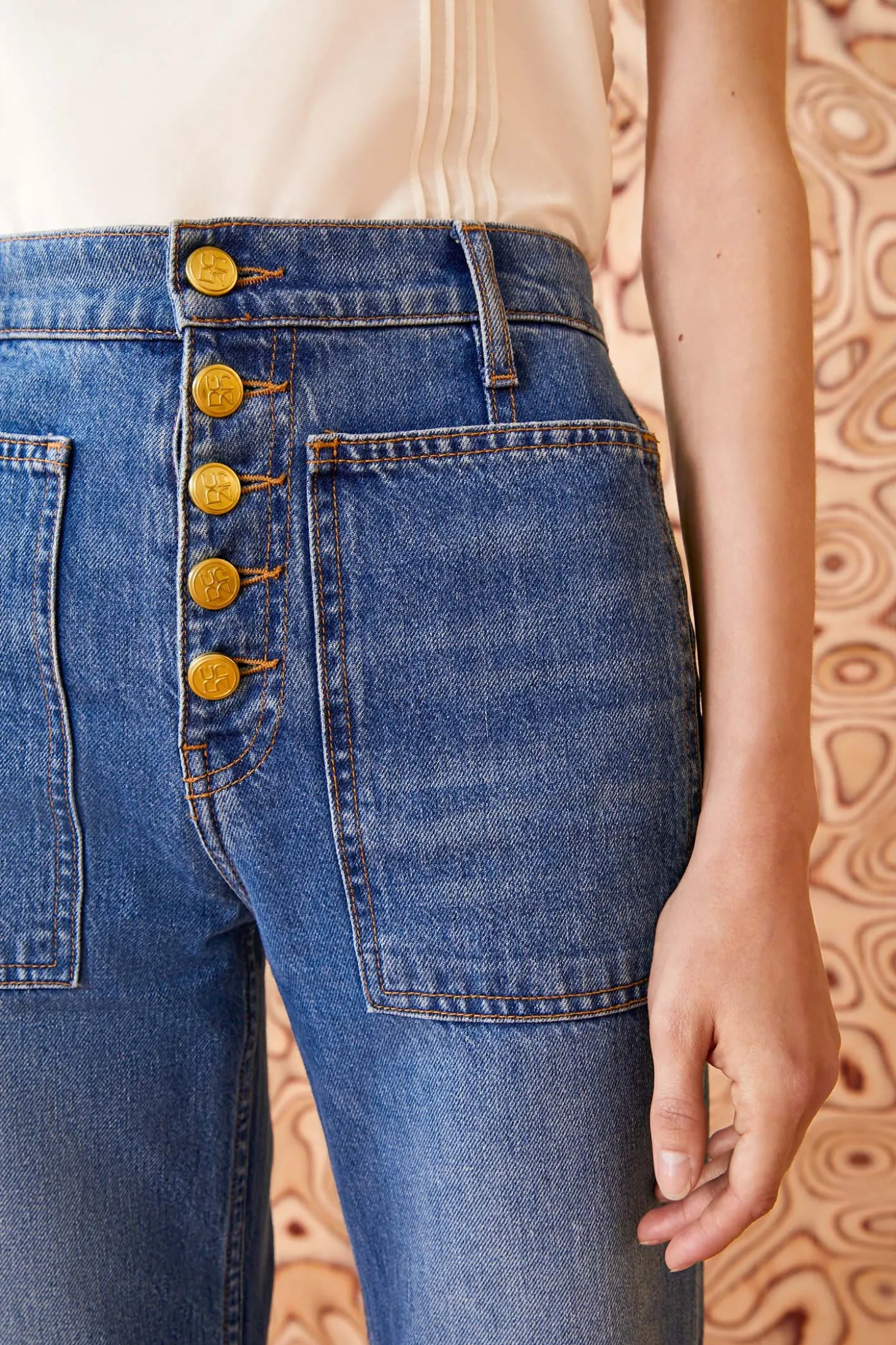 A forever-favorite silhouette, our Lou Jean is responsibly handcrafted in Los Angeles from non-stretch denim with oversized patch pockets and a vintage-inspired flared hem. This elevated essential arrives in our classic Danube wash that’s perfectly faded and whiskered, has a flattering high waist, and is finished with our signature antique brass buttons exposed at the center front.