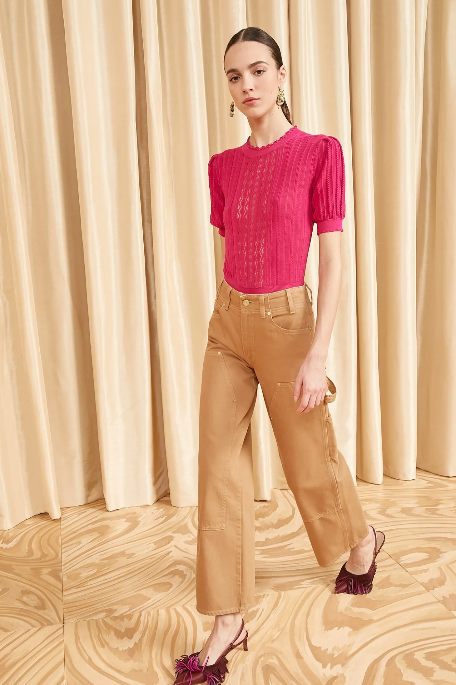 Sustainably handcrafted in Los Angeles, our forever-favorite Olympia Jean is re-envisioned in our new khaki-hued Tangier wash. With nods to traditional workwear, this carpenter-style jean is cut from non-stretch denim, has a mid-rise waist, and is adorned with our signature brass belt loop and logo-embossed leather patch.