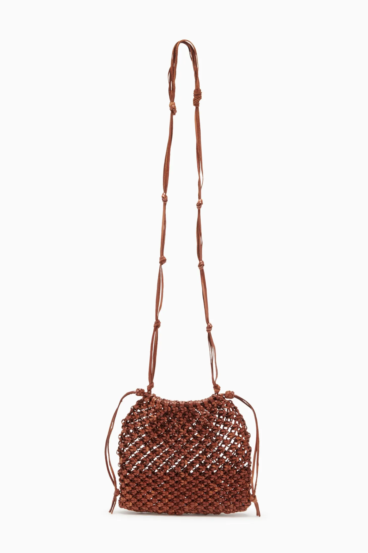A gorgeous addition to our artisan-made handbags, our Tulia Crossbody is expertly hand-woven in India using an intricate macramé technique. Arriving in rich pecan brown, it has an elegantly slouched silhouette that fits your phone, a drawstring top, and an adjustable shoulder strap with knotted detailing. Due to the handmade beauty of this piece, no two are exactly alike.