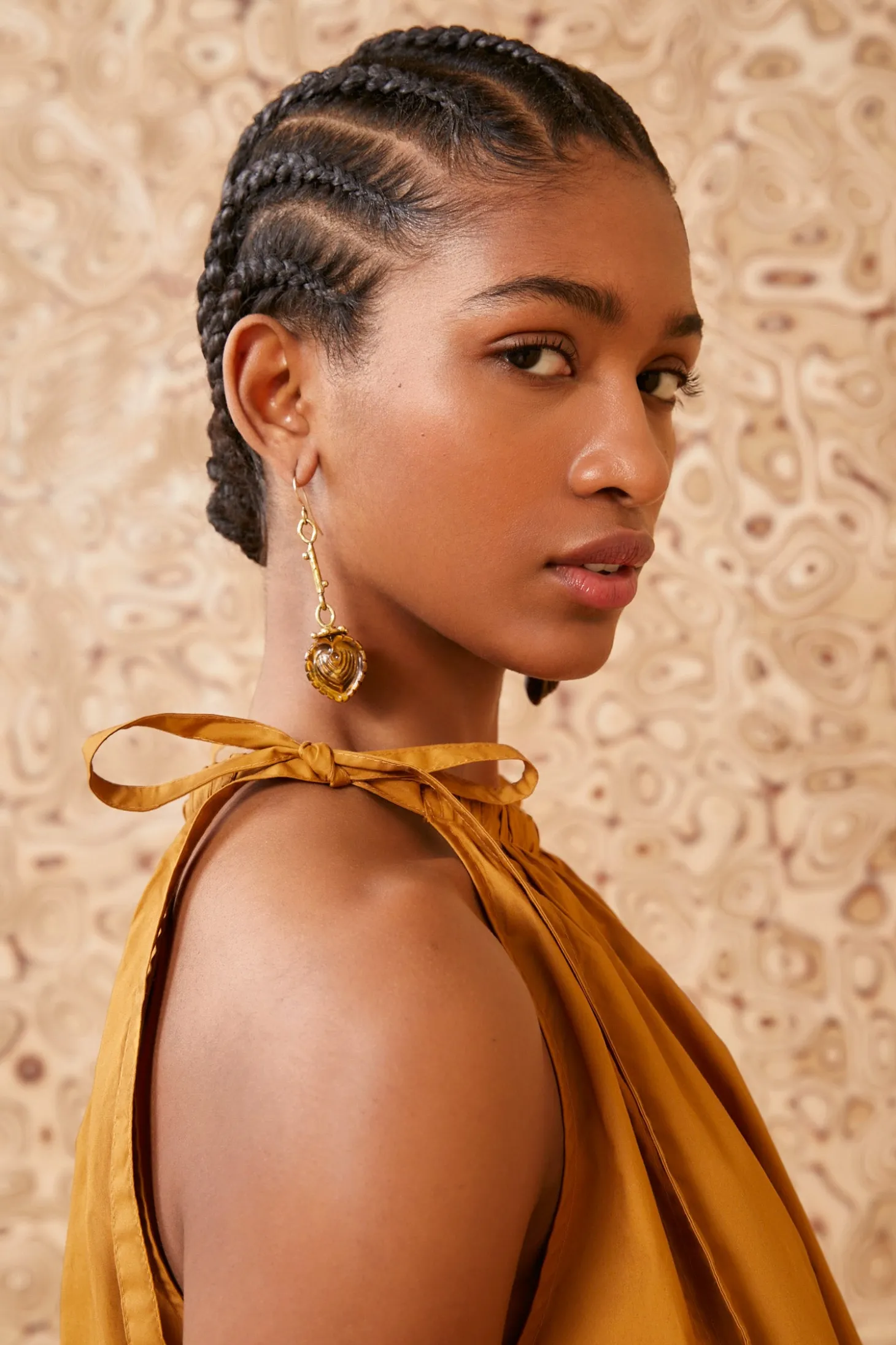 Playful and effortless, our Zoe Top is cut from crisp poplin with slender ties at the shoulders and a flowy bodice. This earthen yellow beauty has a sleeveless silhouette and pairs perfectly with our handcrafted denim.