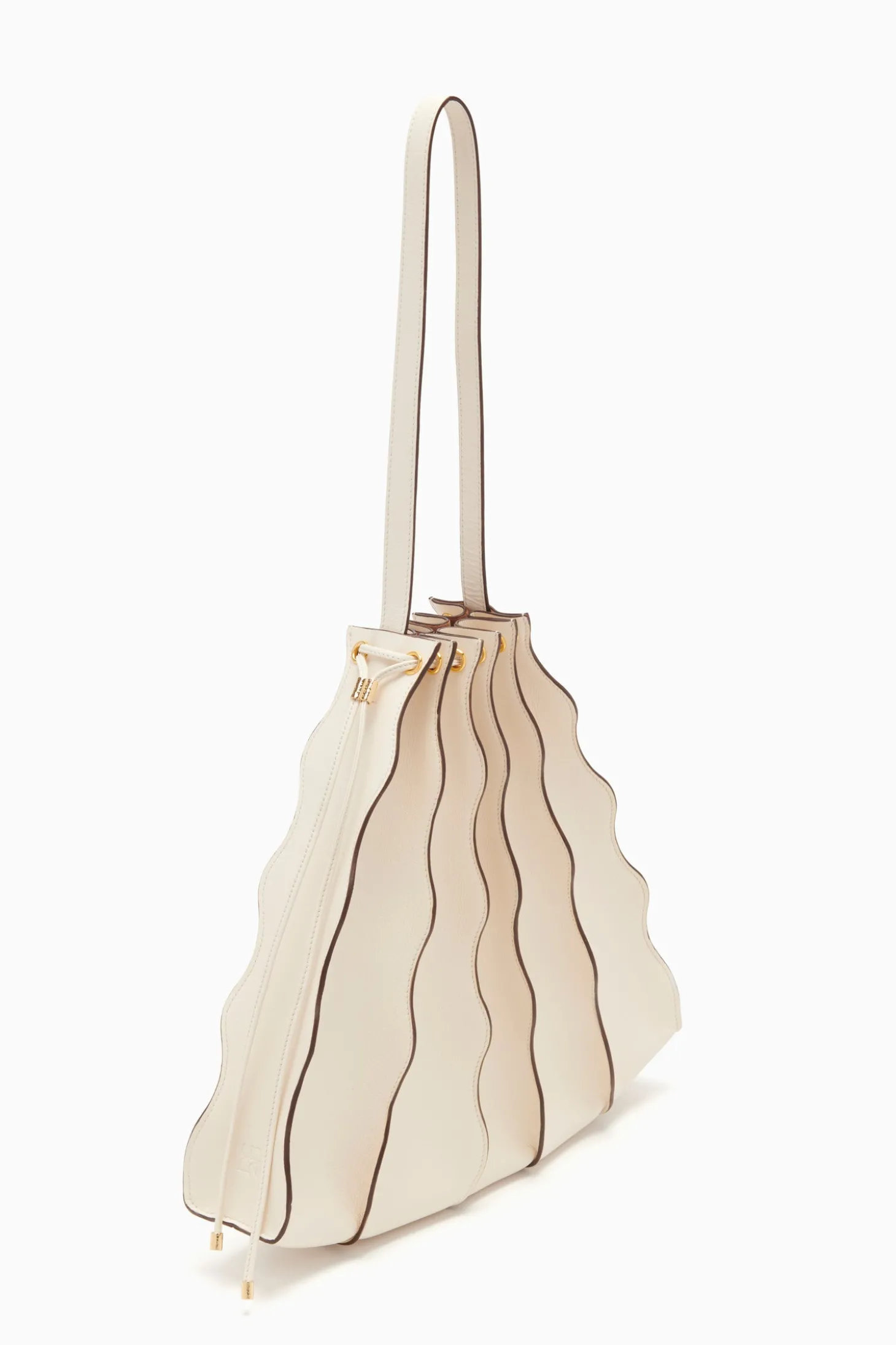 Featured in Look 17 of our Spring/Summer ‘24 Runway Show, the Adria Tote is skillfully made in Italy from multiple strips of leather sewn together and then finished with painted edges, accentuating the beauty of the waves. This alabaster white bag has a drawstring opening that reveals a roomy suede-lined interior and is finished with gleaming antique brass hardware.