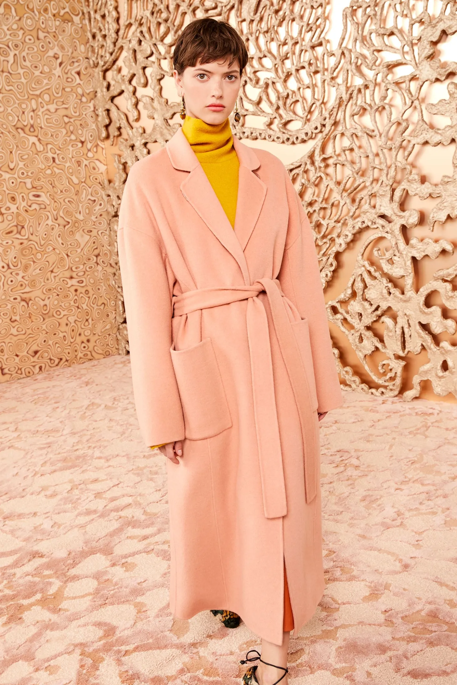 Showcased in Look 7 on the Autumn/Winter 2024 runway, our Harlow Coat is tailored from our beloved double-faced wool blended with cashmere in a soft dusty rose hue. This luxurious, single-breasted style features dropped shoulders, deep pockets, and a matching belt that cinches the silhouette.