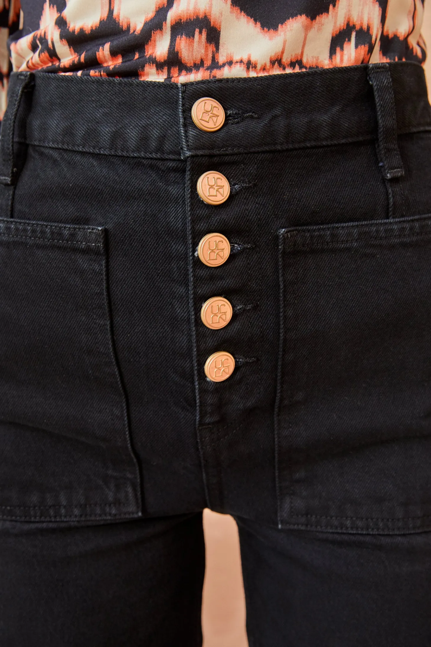 As featured in Look 38 of our Autumn/Winter ’23 Runway Show, the Lou Jean is our high-waist patch pocket flare silhouette. Responsibly handmade in Los Angeles, this jean features exposed center front buttons and is cut from non-stretch rigid black denim for a true forever favorite.