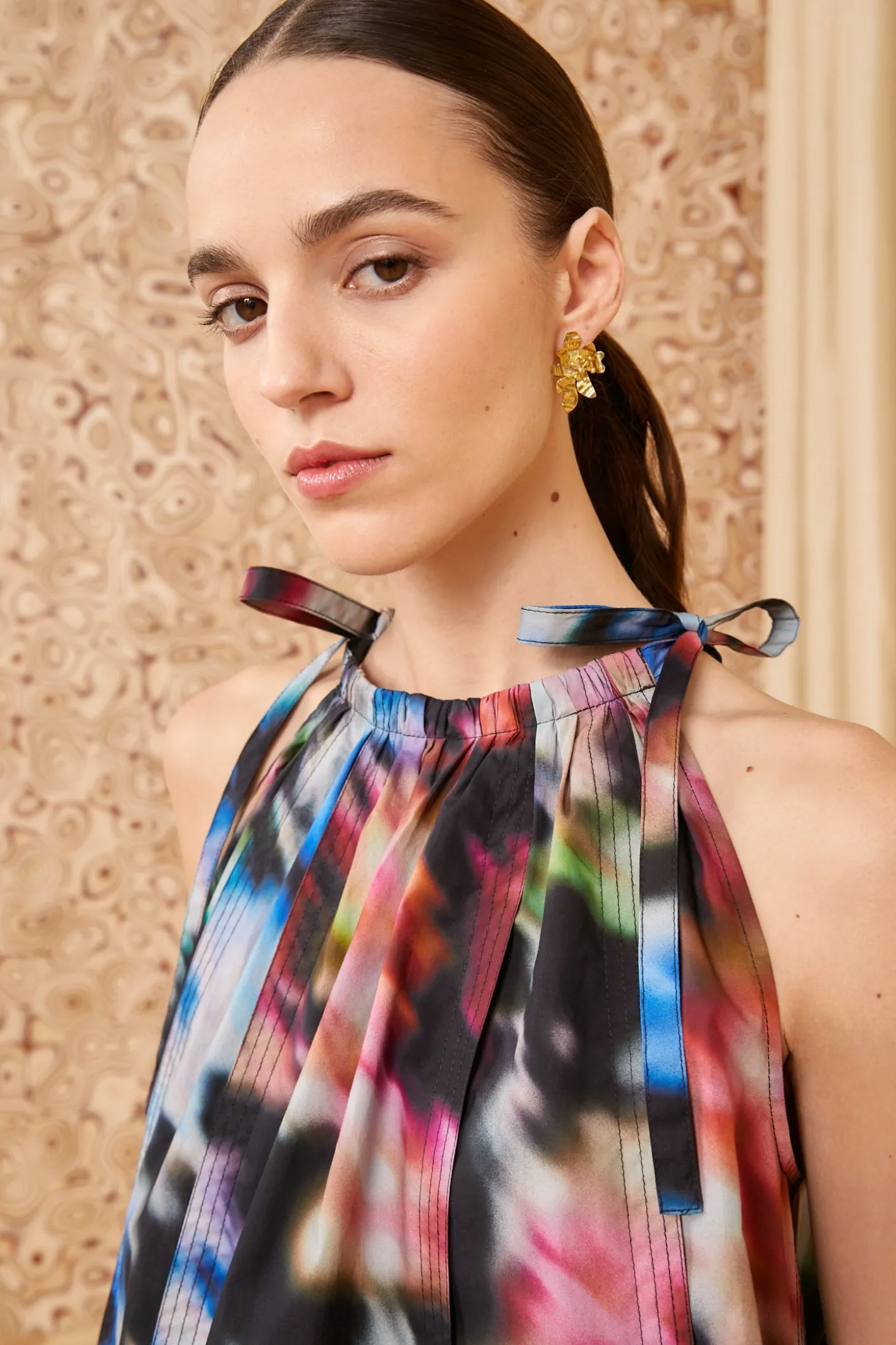 Playful and effortless, our Zoe Top is adorned with our ethereal floral print featuring blooms unexpectedly scaled up and distorted in electric blue, red, and green hues. Made from crisp poplin, this sleeveless top has slender ties at the shoulders, a flowy bodice, and pairs perfectly with our handcrafted denim.