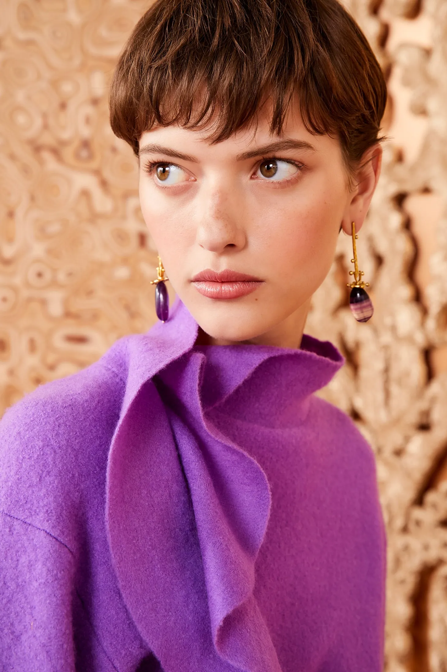 Debuting in Look 1 on our Autumn/Winter ‘24 runway, our Corinna Pullover is a sculptural silhouette made from felted merino wool in a rich orchid purple. Impeccably soft and lightweight, this long-sleeve top beautifully cocoons the body and is adorned with cascading ruffles. Style yours with our Mireya Skirt for the complete runway look.