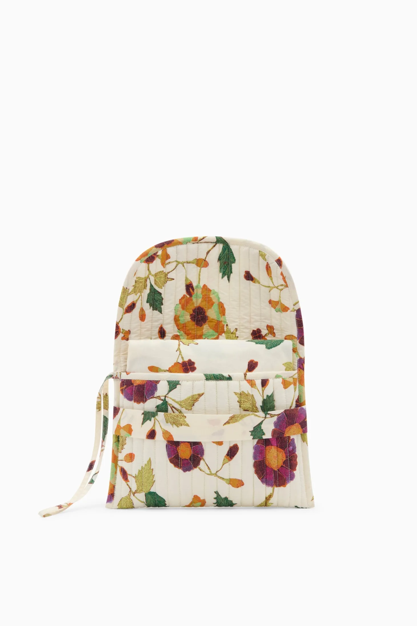Exclusively ours, the Kamari Tote is made from floral cotton awash in cream, pink, and green hues. This carryall bag features a rounded double handle and comes with a separate to keep your essentials organized.